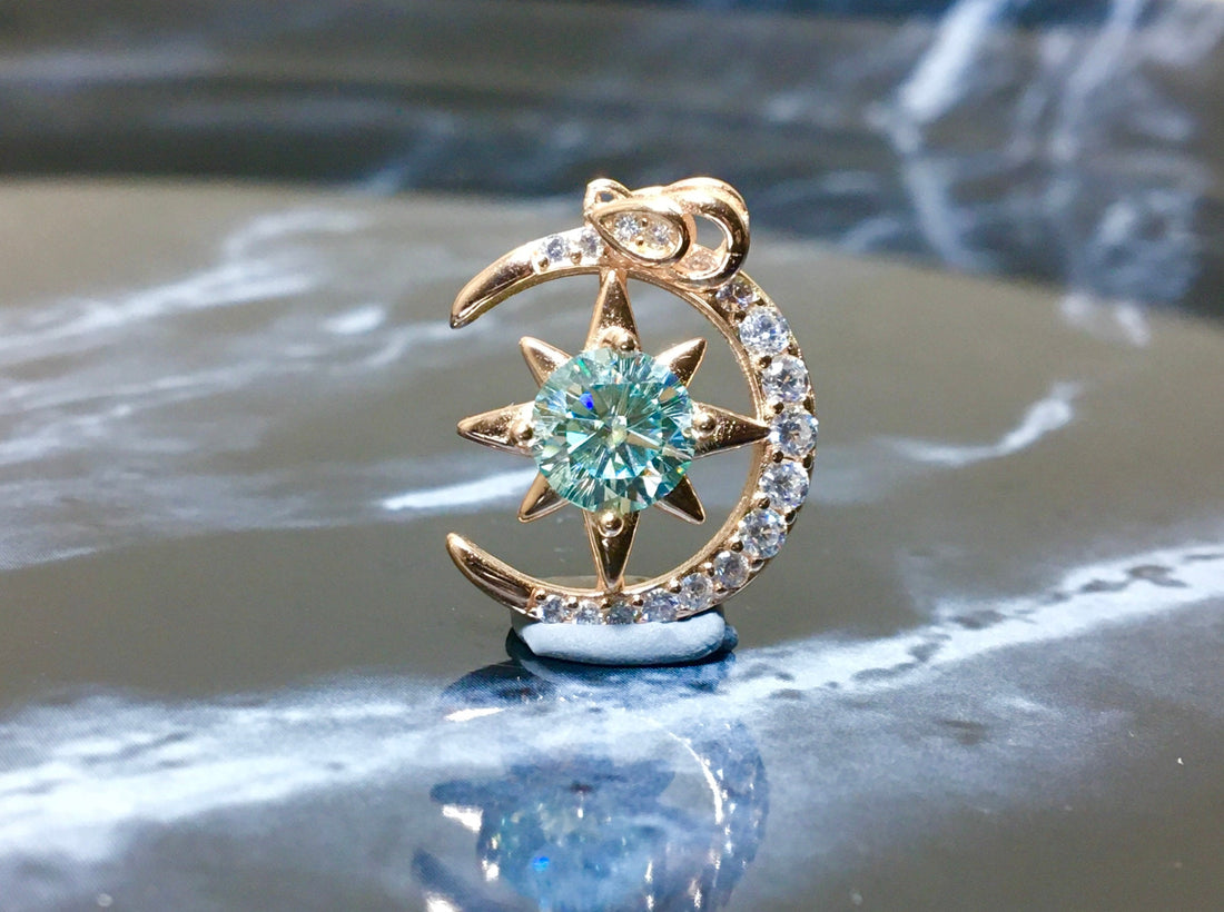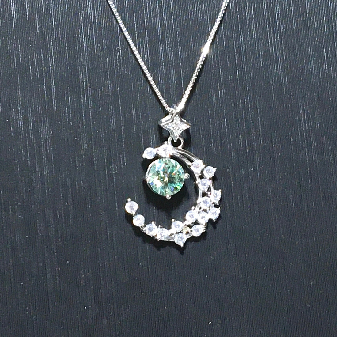 Paraiba Blue Moissanite Necklace, Moon Galaxy Star Aquamarine 1ct Moissanite,Jewelry Pendant,Anniversary Gifts,Gifts for Her,Valentines gift