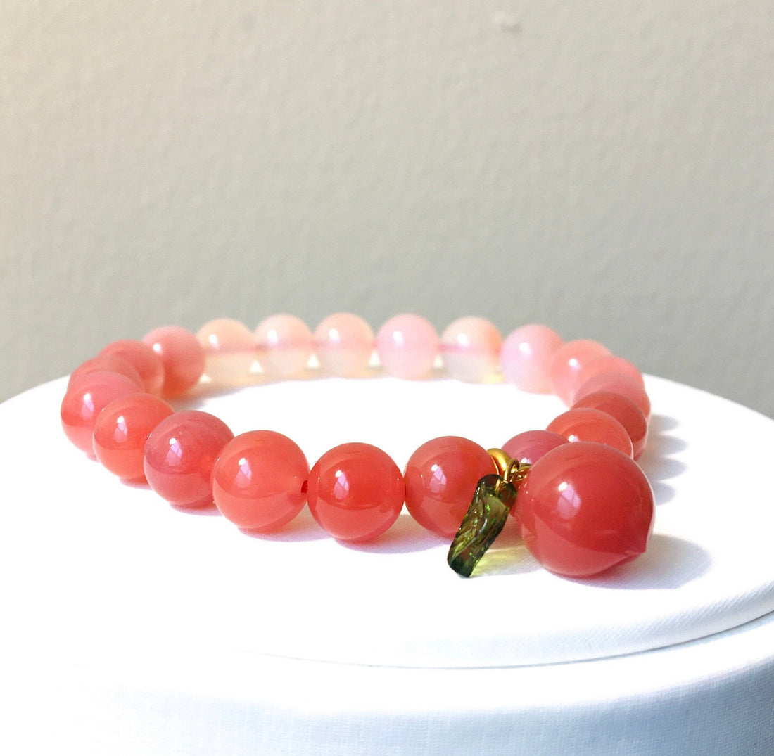 Pink Peach Agate Bracelet, Natural Gemstone Gradient Crystal Agate Bracelet, Round Beads, Gift for Her, Handmade Jewelry, Summer Lucky Stone