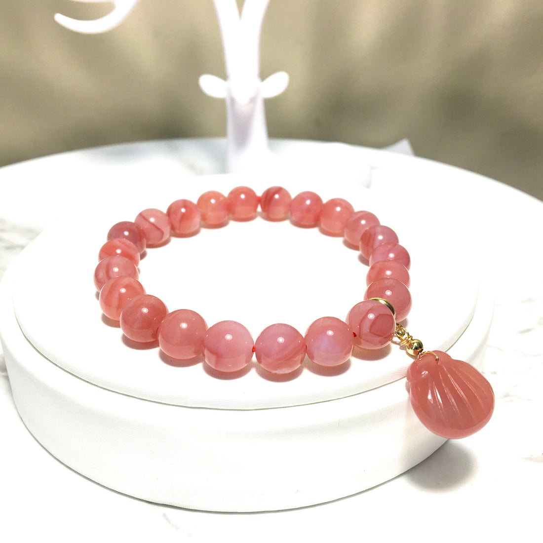 Pink Peach Shell Agate Bracelet, Natural Gemstone Crystal Agate Bracelet,Gift for Her, Handmade Bracelet,Lucky Stone,Valentines Gift,