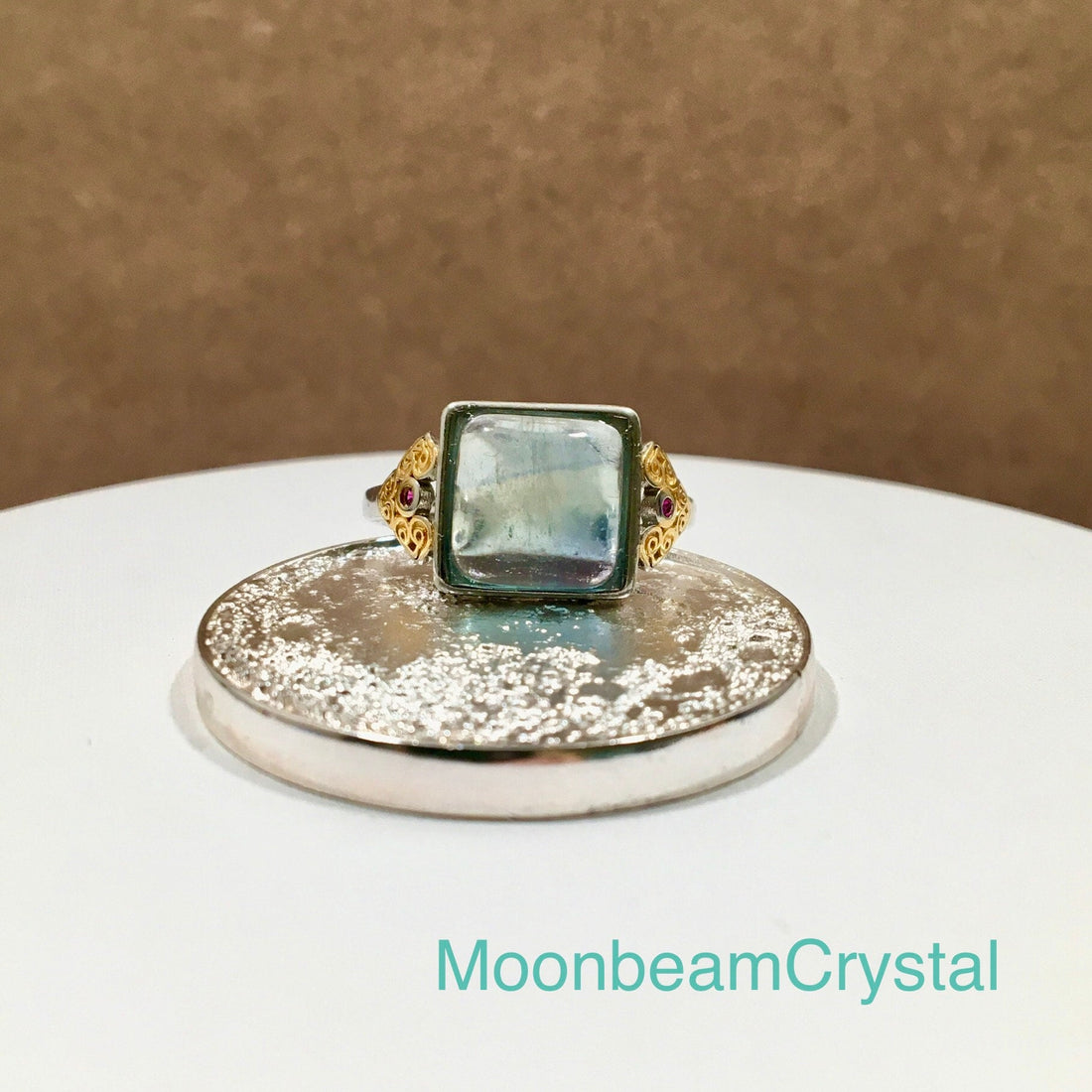 Rainbow Blue Green, Unicorn Purple Blue, Fluorite Ring Fluorite Square Gemstone Ring Gift for Her Fashion Ring