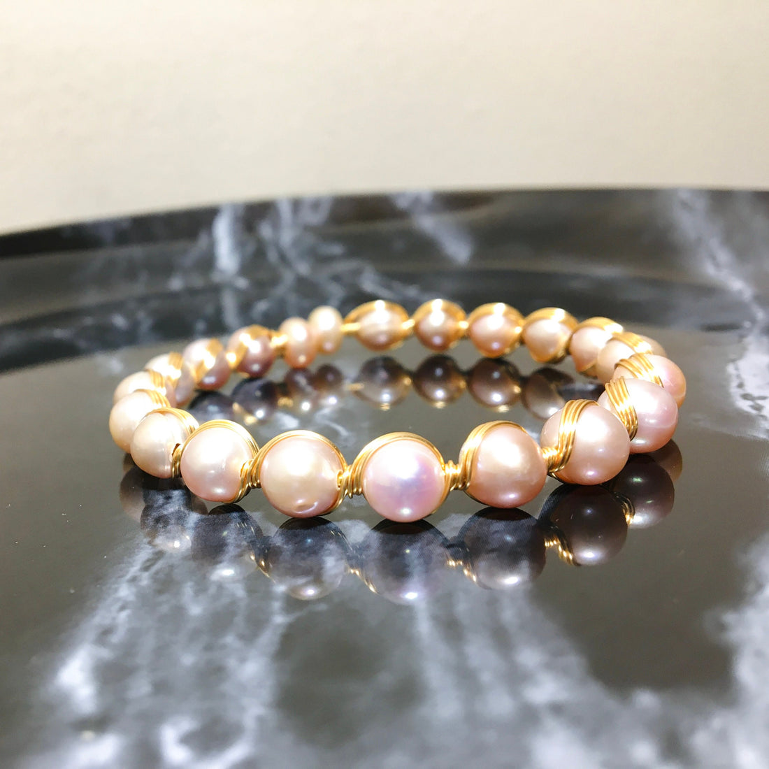 Pink Purple champagne Pearl, Sterling Copper Bracelet Bangle, Freshwater Natural Pearl Bracelet, Unique Anniversary Bracelet, Gifts for Her