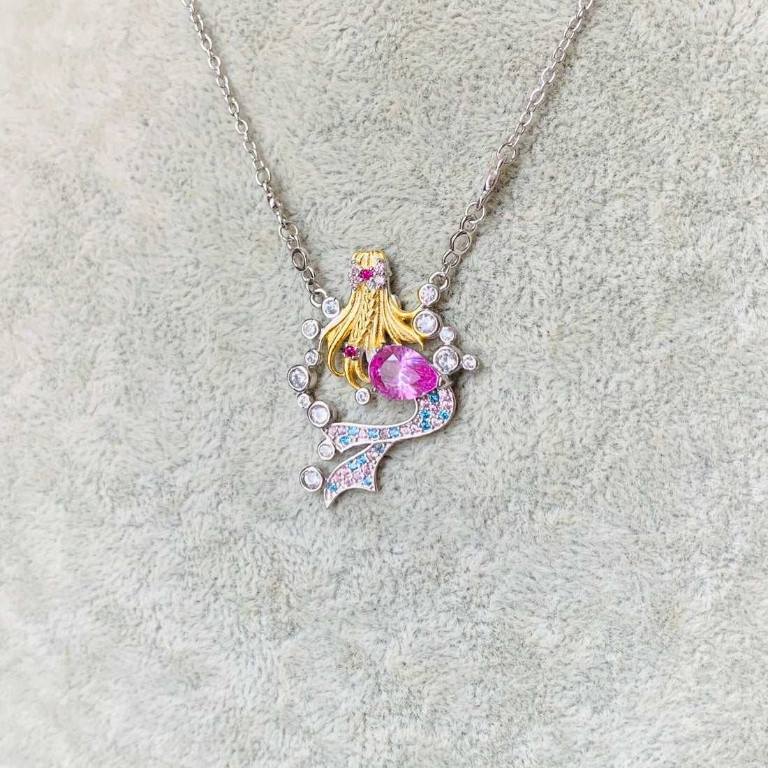 Pink Topaz Mermaid Princess Necklace, Anniversary Engagement Gift for her, Birthday Dream Gift Necklace,Silver Gemstone Unique Necklace Gift
