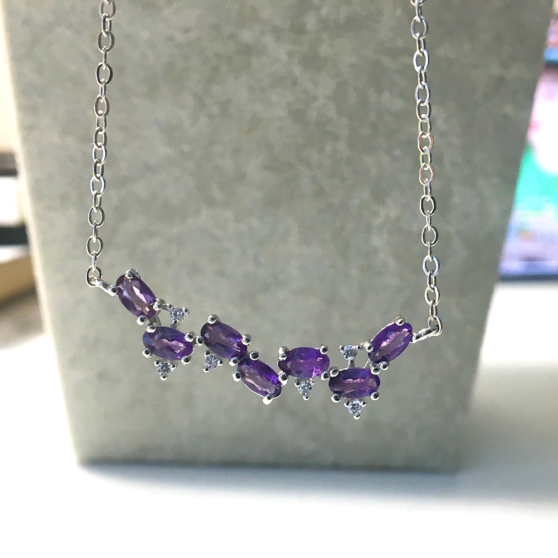 Purple Amethyst Clavicle Necklace,Garnet Crystal Necklace,Silver plated chain,Lavender Bridesmaid Gift,Anniversary,For Her,Crystal Charm