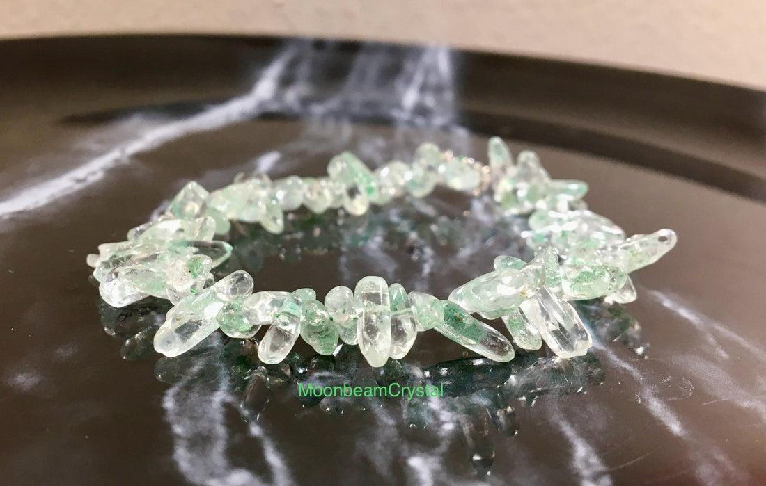 Rare Find Gemstone Collection: Emerald Green Phantom Raw Quartz Bracelet Capture the essence of rarity...