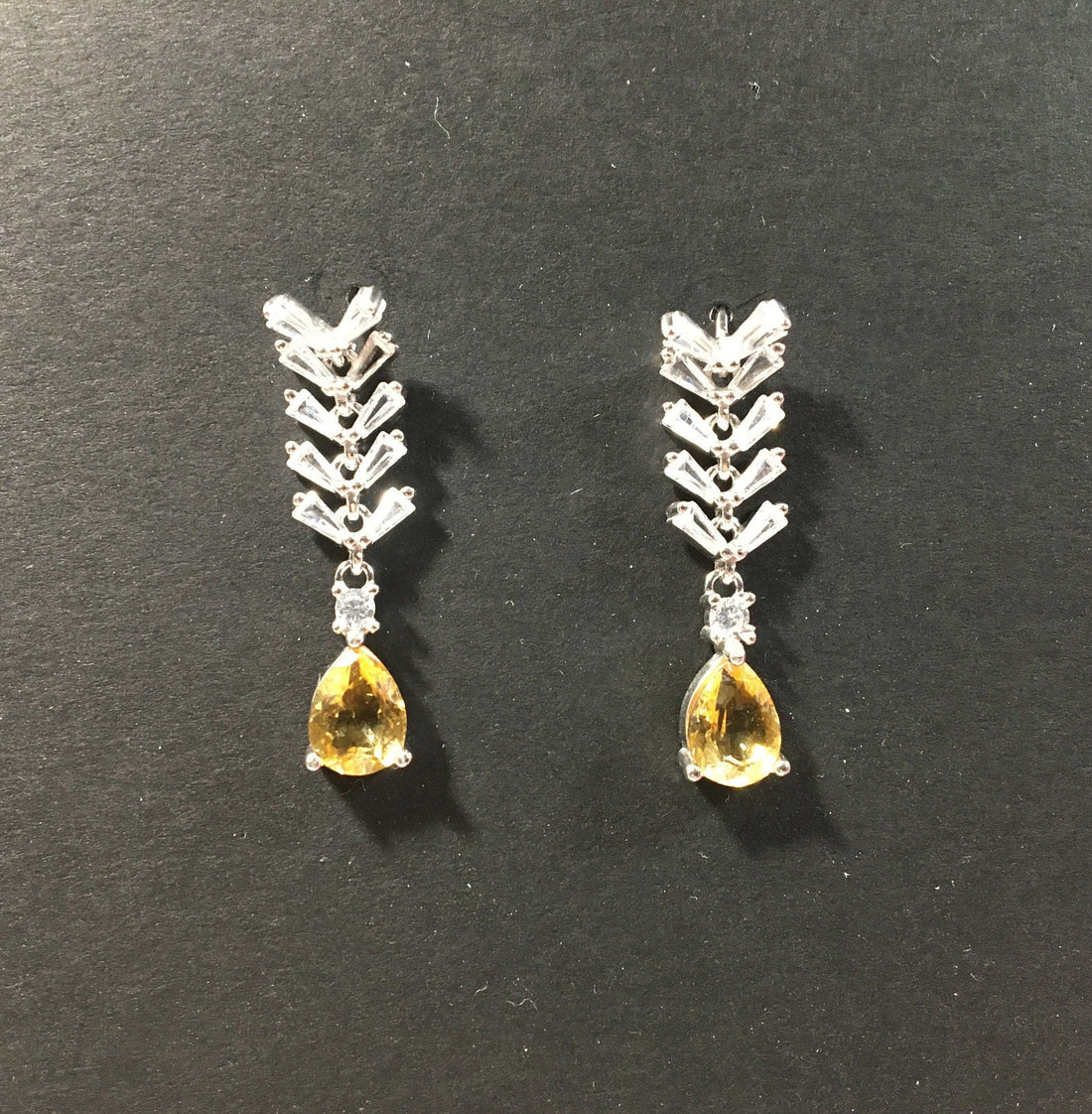Platinum-Plated Silver Citrine Water Drop Earrings with Zircon Leaf Design - Luxury Gemstone Jewelry for Gifts & Special Occasions