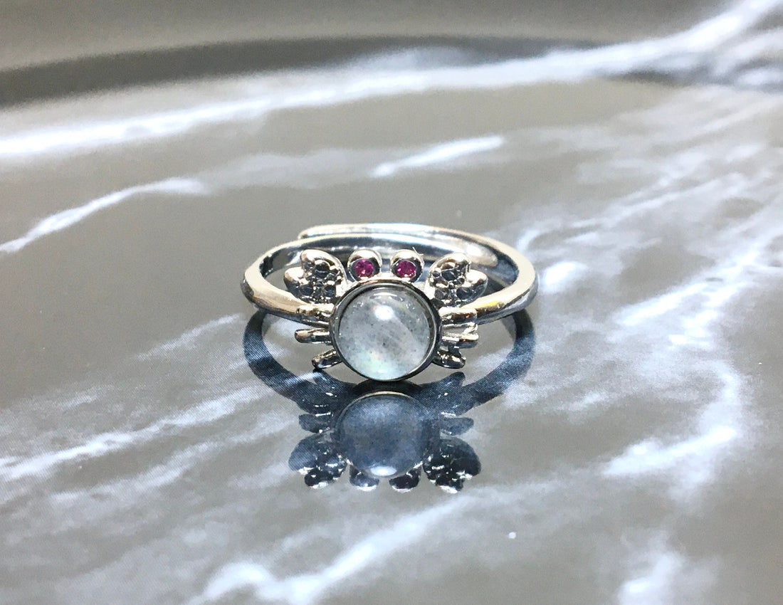 Cute Crab Gray Moonstone Ring,Natural Crystal Gemstone Rings,Lovely Gift for Her,White Gold Plated Rings,Birthday Gift,Graduation Ring Gift