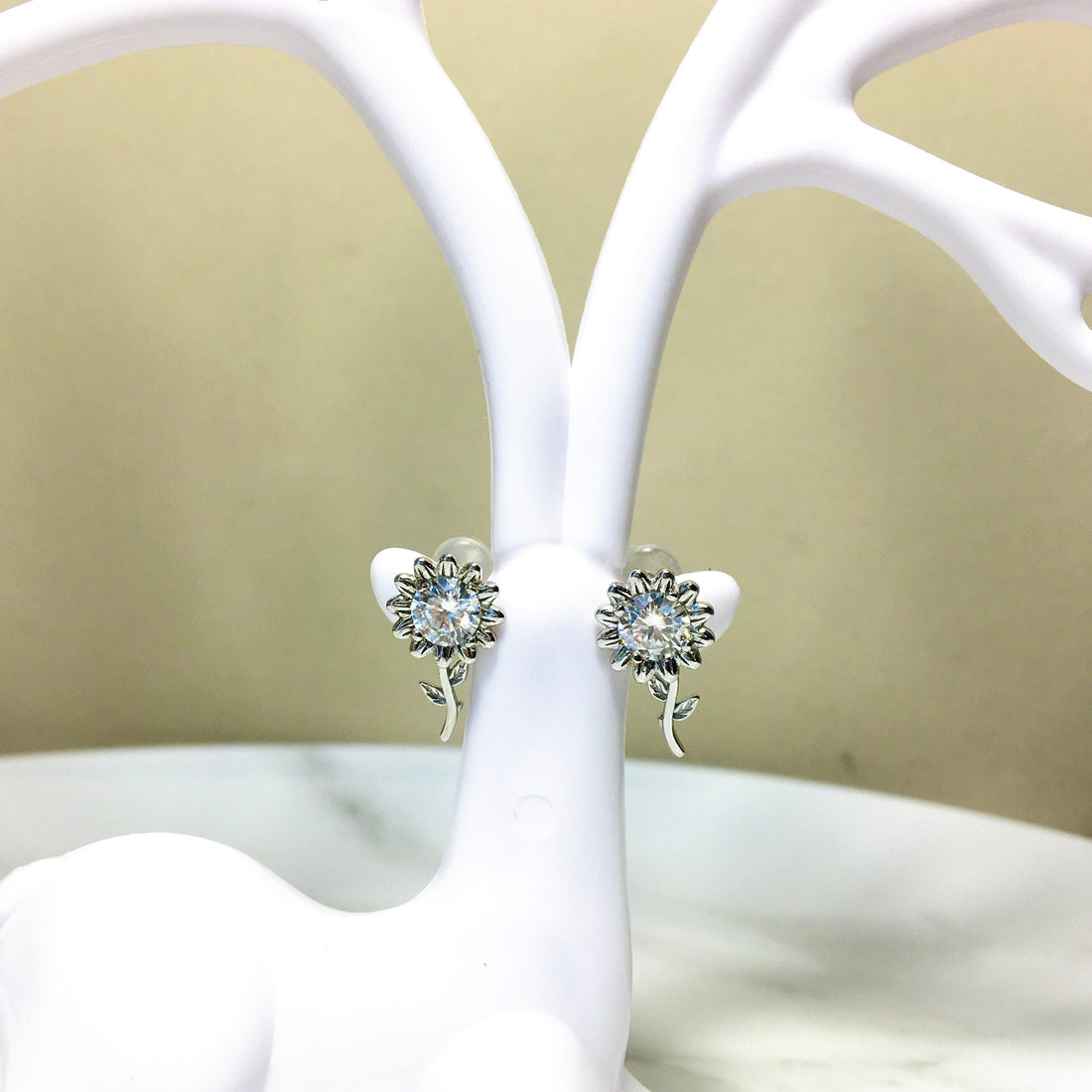 Cute Delicate Sunflower Earrings,White Moissanite 0.5 ct Earrings, for Anniversary Engagement 925 Silver Earring Special Gift for Girlfriend