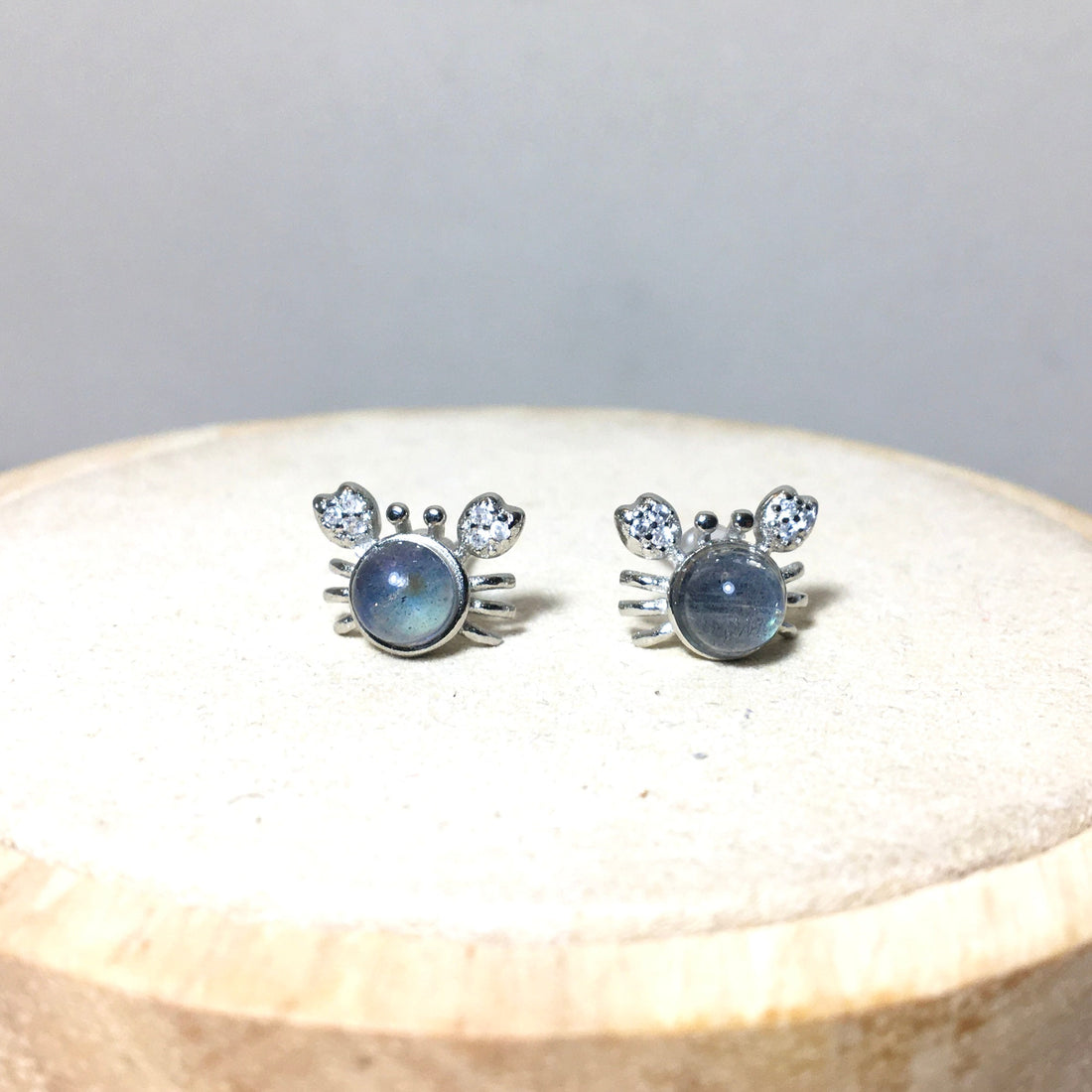 Cute Crab Gray Moonstone Earrings, Natural Crystal Gemstone Earrings,Lovely Gift for Her,Birthday Gift,Animal Earrings, Graduation Gift
