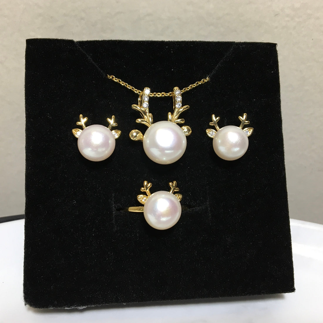 Christmas ELk Pearl Pendant Necklace Jewelry set,Pearl Ring,Pearl Earrings,Gold Plated Jewelry,Natural Freshwater pearl,Best Christmas Gift