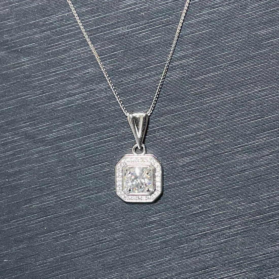 Colorless Gorgeous Moissanite Necklace,Princess Square,1ct Moissanite Simple SilverPendant,Anniversary Necklace for Her,Mother's Day gift