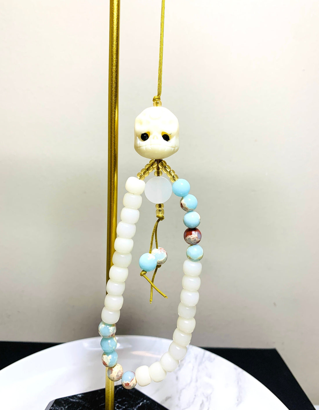 Halloween Bag Phone Car Accessories Keychains Chain, Sitavana Ghost Natural Bodhi Jade, Birthday Gift, White Jade Gift for Her Him