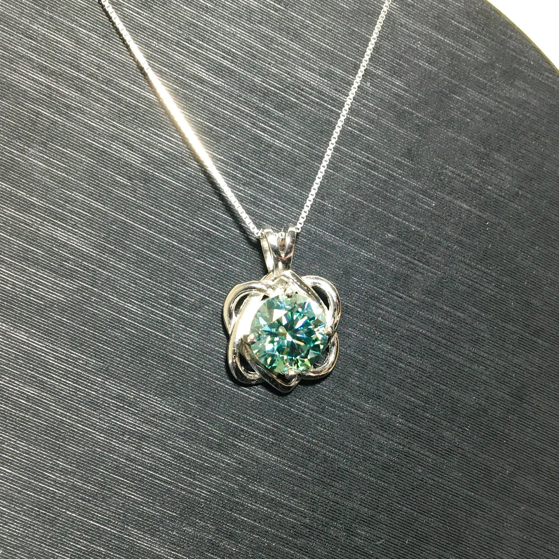 Hexagram Medal 3ct Green Blue Moissanite Necklace, Silver Necklace,Anniversary, Birthday Gift for Her,Handmade Jewelry, Valentine's Day