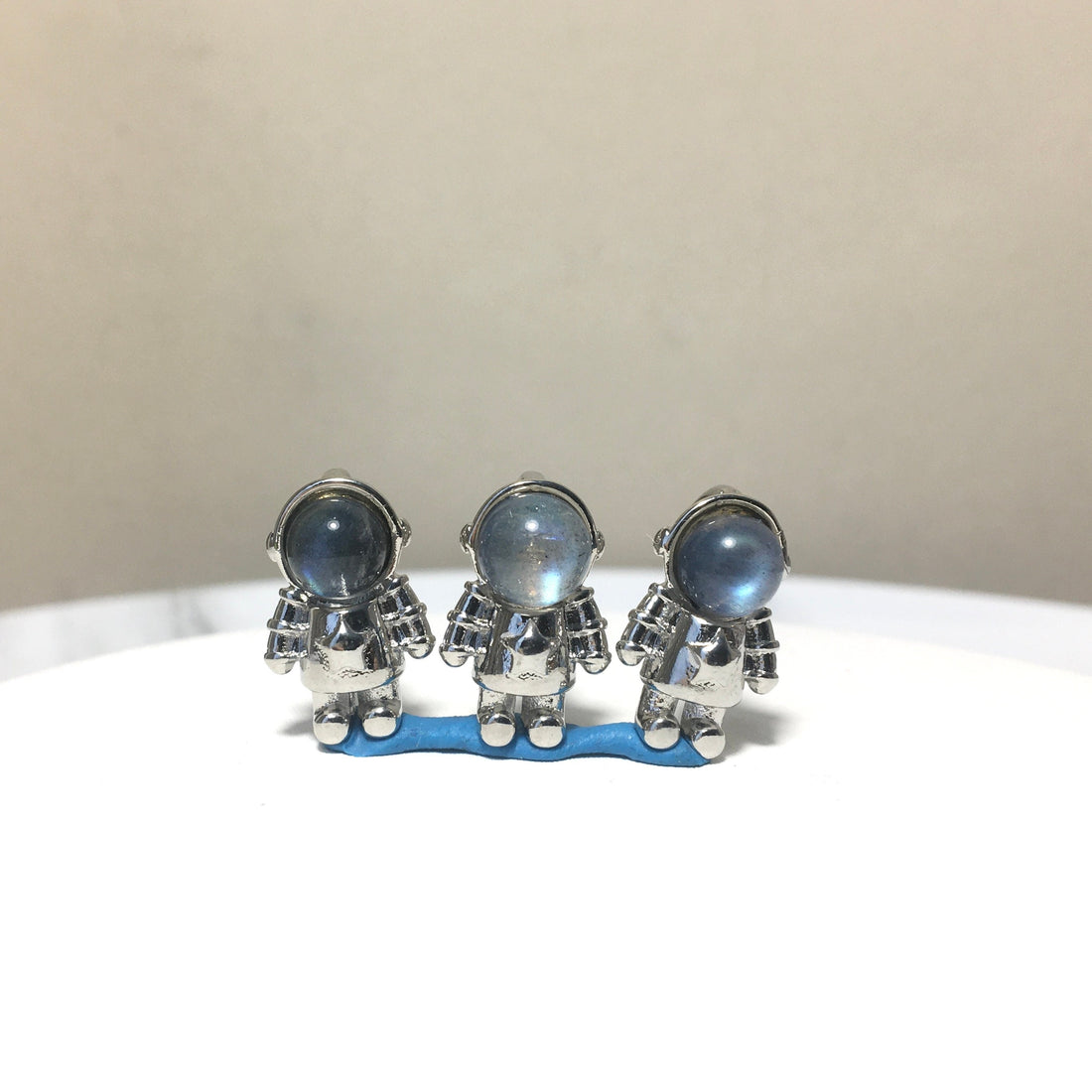 Handmade Moonstone Astronaut spaceman Necklace, Natural Crystal Gemstone Necklace for Her,Silver Plated,Unique Birthday Graduation Gift