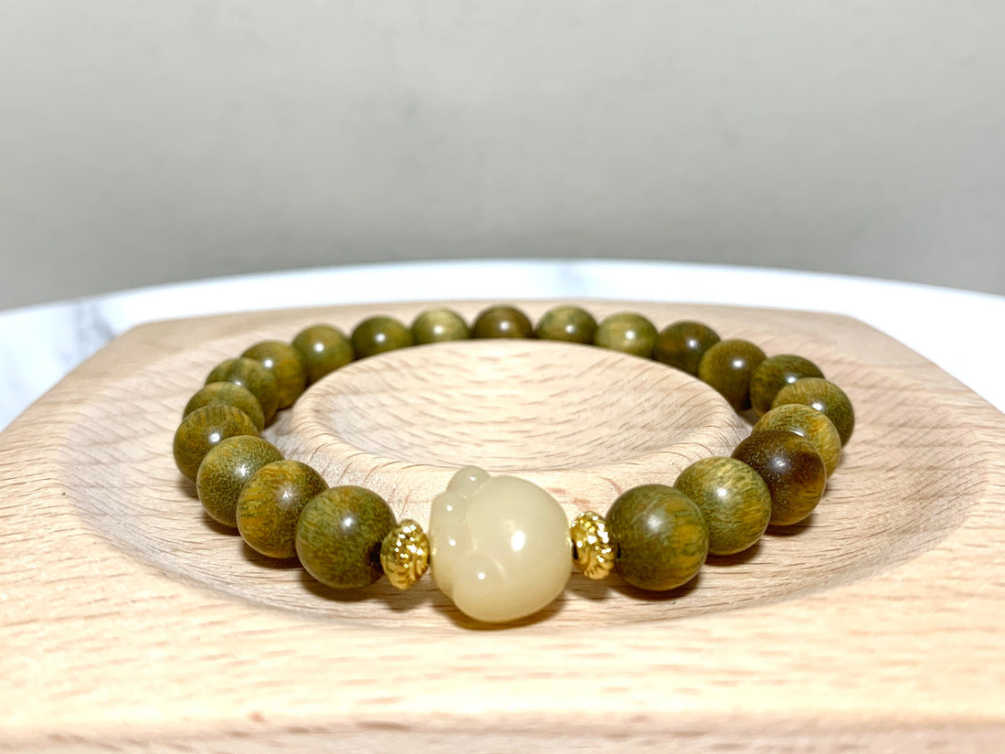💖Cute Cat Paw Wood Bracelet • Handmade Item • Around 8mm Green Wood • Adjustable...