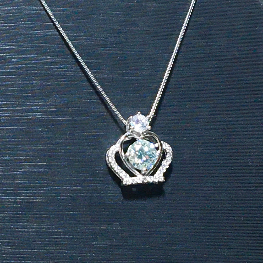 Light Blue Moissanite Necklace,Aquamarine Blue,1ct Moissanite,Princess Crown Pendant,Solitaire Anniversary Necklace, Gift for Her,