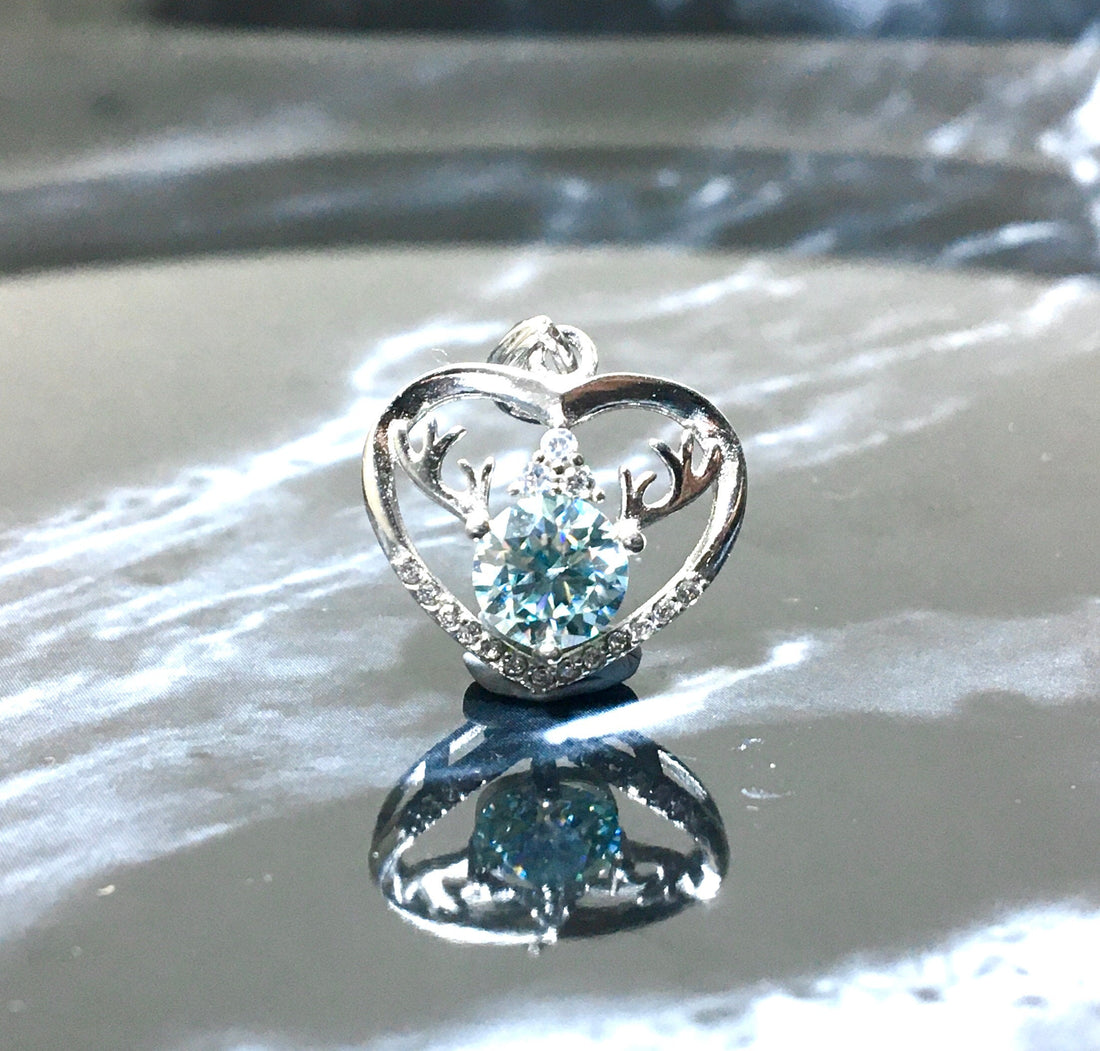 Light Blue Moissanite Necklace,Reindeer Aquamarine, Reindeer Pendant, Anniversary Necklace,Gift for Her,Reindeer Gift,Christmas Necklace