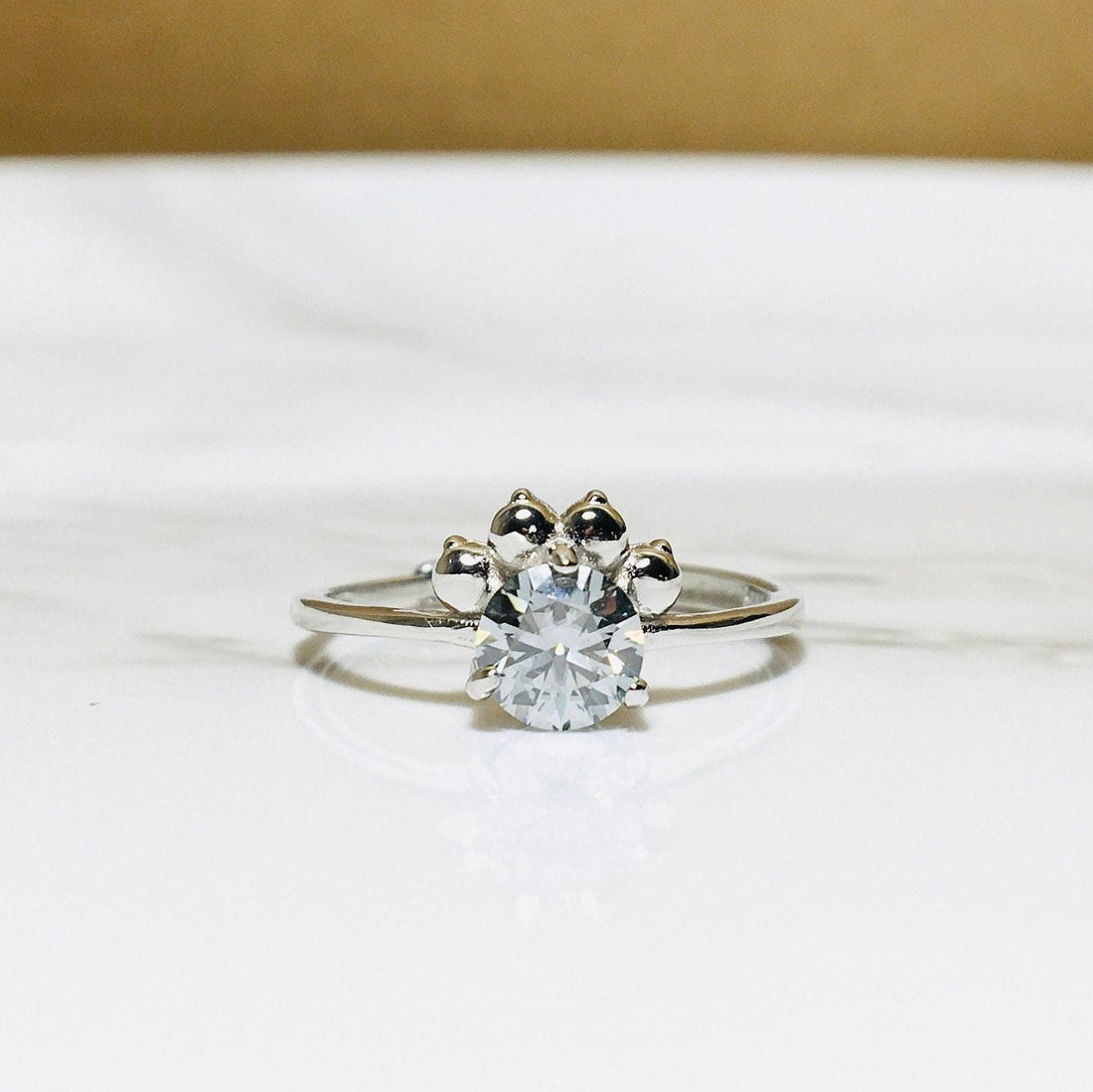 Kitten Paw Ring Moissanite Halo 0.5ct,Anniversary ,Grey Moissanite,White Gold Sterling Silver, Gift for her girl, Cute Kitty Paw Cat Pet