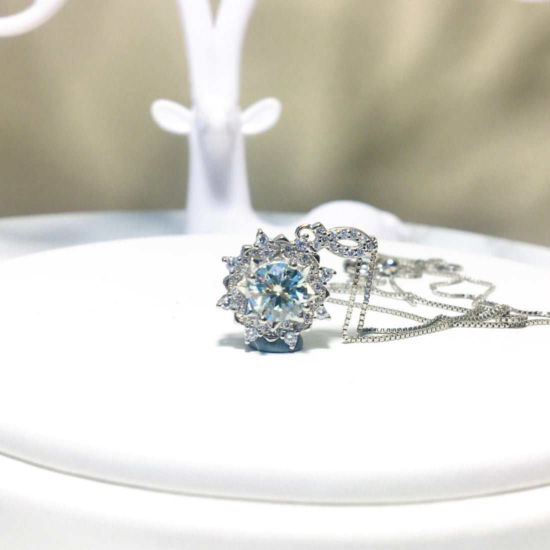 Light Blue Moissanite Necklace, Snow Aquamarine, 1ct Moissanite Pendant, Solitaire Necklace, Anniversary Necklace,Valentines Gift For Her,