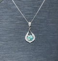 Blue Green Moissanite Necklace,Pear Aquamarine,1ct Moissanite Water-Drop Pendant,Solitaire Anniversary Necklace,Birthday Gift for Her,