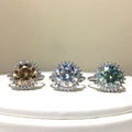 Champagne/Blue/White Sunflower Moissanite Sterling Silver Rings,5Ct,Vintage Wedding Ring,Silver Diamond Ring,Anniversary Ring,Gift for her