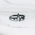 Dainty Moissanite Stacking Ring, Unique Design, Minimalist Fashion Pulse Heartbeat Ring,Black Gold Plated Stackable Silver Band,Gift for Her