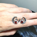 Handmade Easter Gift Garnet Rabbit and Moon Earrings - Crystal Gemstones,White Gold Plated Jewelry - Unique Handmade Graduation Gift for Her