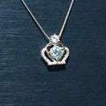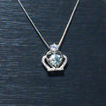 Light Blue Moissanite Necklace,Aquamarine Blue,1ct Moissanite,Princess Crown Pendant,Solitaire Anniversary Necklace, Gift for Her,