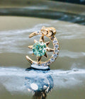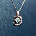 Paraiba Blue Moissanite Necklace, Moon Star Aquamarine,1ct Moissanite Moon & Star Pendant, Anniversary Necklace,Gift for Her,Mother's Day
