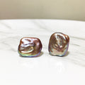 Pink Purple Baroque Pearl Earrings, Square Pearl Earrings,Freshwater Natural Pearl Earrings,Wedding Jewelry,Valentines Gift for Her