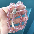 Pink Strawberry Quartz Crystal Bracelet,Goldfish Animal Lotuses Flower Bracelet,Reiki Lucky Bracelet,Birthday Gift for Her, Graduation Gift