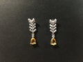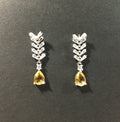 Platinum-Plated Silver Citrine Water Drop Earrings with Zircon Leaf Design - Luxury Gemstone Jewelry for Gifts & Special Occasions