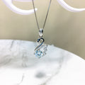 Swan Light Blue Moissanite Pendant Necklace,Swan Sterling Silver Necklace,White Gold Plated Necklace,Anniversary Wedding,Mother's Day Gift