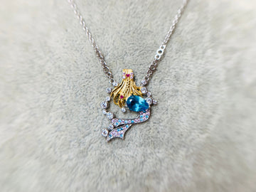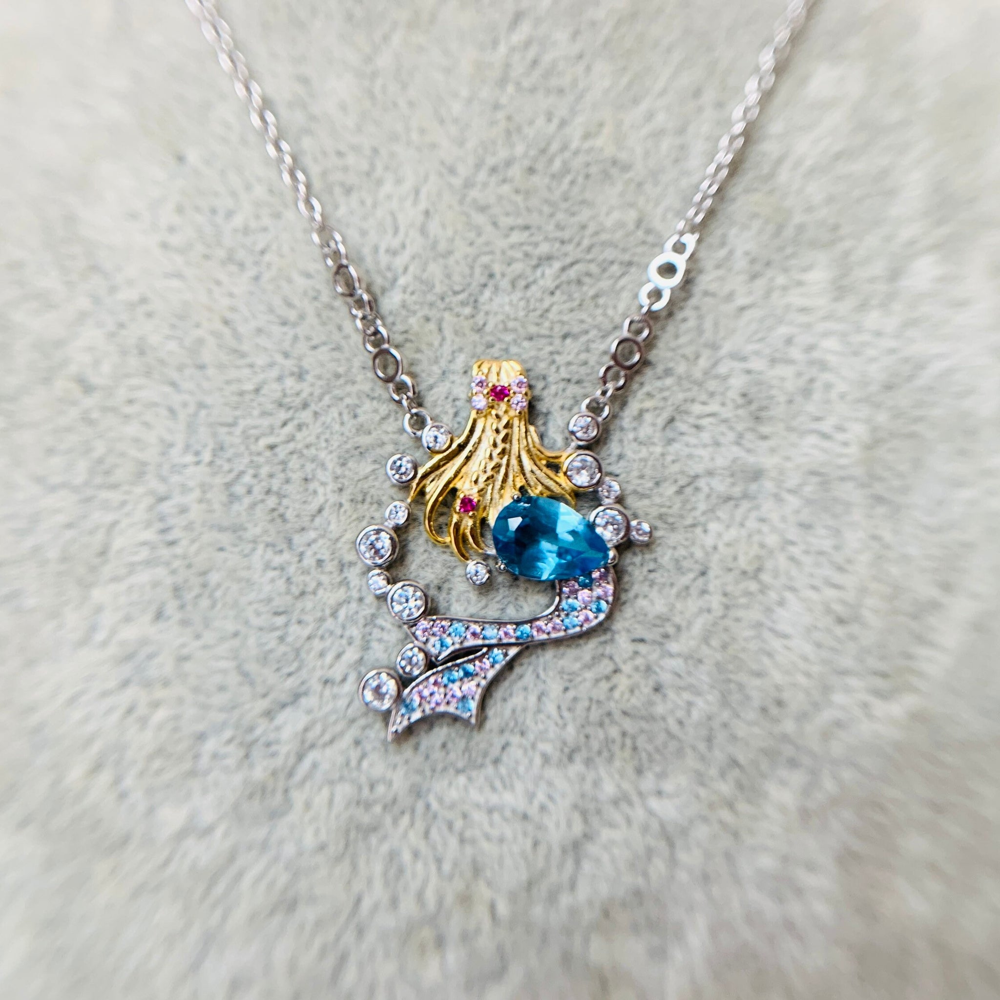 Swiss Blue Topaz Mermaid Princess Necklace,Anniversary Engagement Gift for her, Birthday Dream Gift Necklace,Silver Gemstone Unique Necklace