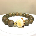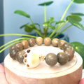 • Around 12 mm Verawood Green Wood & Bodhi Paw & Gold Plated Flower