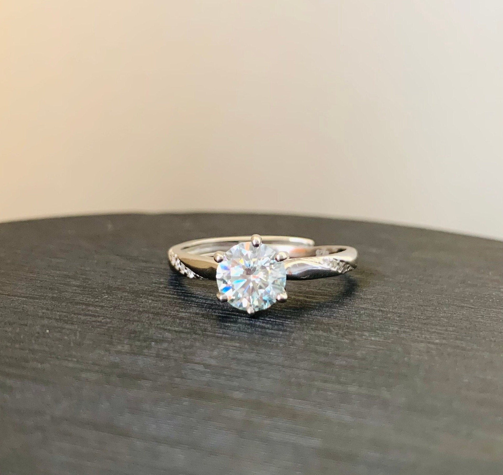 White Brilliant Classic Ribbon Moissanite Ring,1ct Moissanite,Engagement Anniversary Ring, Gift for Her, Vintage, Sterling Silver, Valentine